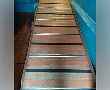 Способ монтажа: алюминиевый порожек без вставки крепится в проем между двумя напольными покрытиями или на ступени при помощи саморезов (идут в комплекте). Затем прорезиненную ПВХ вставку нужно нагреть строительным или обычным феном, либо подержать в горячей воде, чтобы материал стал мягче и легче вошел в паз профиля.